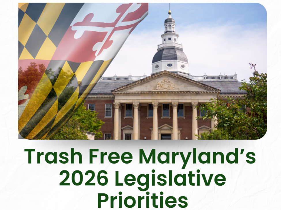 The Maryland 2026 General Assembly convened from January 14 to April 13, 2026. We knew from the outset it would be a challenging session for litter reduction priorities, with much of the legislature focused on affordability and the local economy, as well as energy issues. Still, Trash Free Maryland tracked over twenty recycling, single-use plastic, and trash-related bills for our Advocacy Coalition. We submitted testimony or led our coalition in joint testimony on fifteen bills. Here is our summary of where the legislature ended up on our priorities and other relevant bills.
